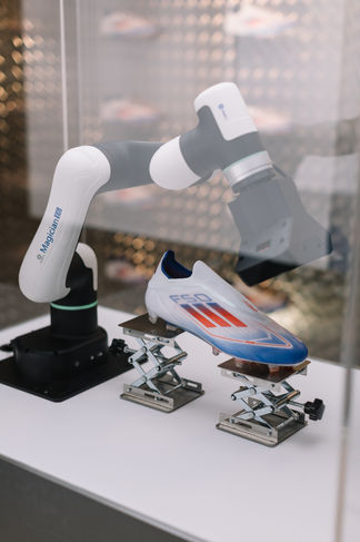 One of my favourite types of jobs are anything todo with Robotics and Kinect sculpture, Originally purchased for Adidas’ predator 2024 campaign, IAN , our Dobot Magic E6 is a 6 Axis robotic arm that was simply there to sell promote shoes in Lab styled area of the store. After getting the robot, I need to design a custom mounting solution that could mount a football boot and hold it in places. After developing this on my 3d printers, I then simply used some key frame animation to move the shoe and present it in interesting places on the install night, as it need to align with both an interior and exterior window display.
