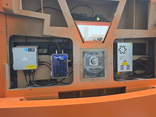 To kick off the project I decided to use a large steeper motor to power the disk with a direct drive to a light 3mm acrylic disk, couple with a Mini PC running a simple unity app that would turn the digital display around the same amount of the physical disk. The entire system was made to be modular so we could fit it in the limited spaces and modify each competent.